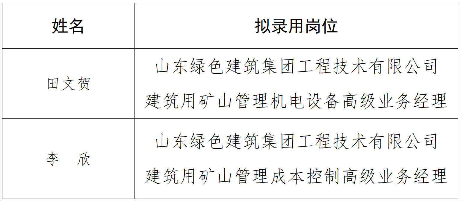 山东绿色建筑发展集团有限公司2023年公开招聘第一批拟录用人员公示